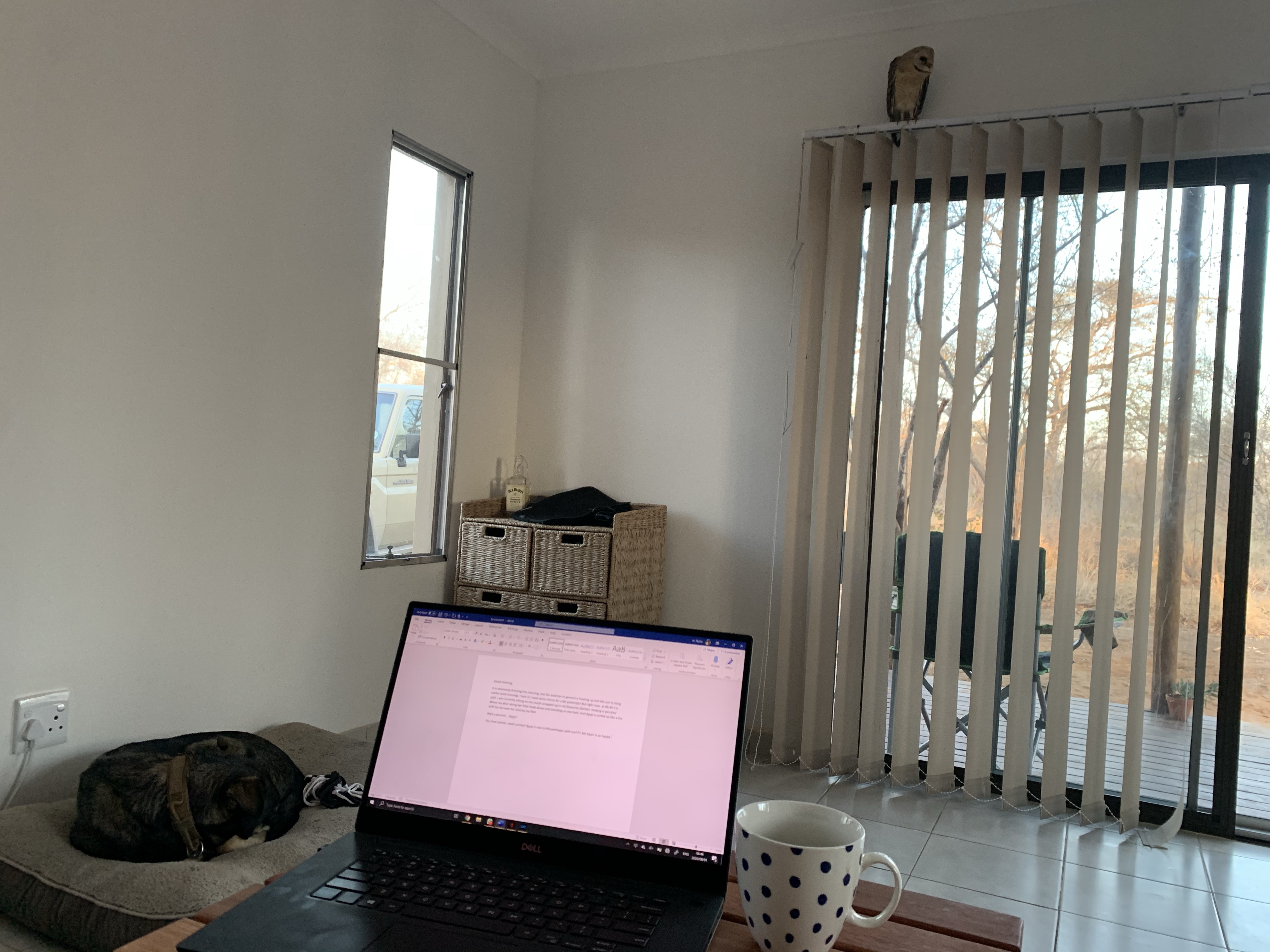 It is absolutely freezing this morning, but the weather in general is heating up and the sun is rising earlier each morning. I love it! I even wore shorts for a bit yesterday! But right now, at 06:30 it is cold. I am currently sitting on my couch wrapped up in my favourite blanket. Hedwig is perched above my door doing her little head dance and standing on one foot. And Ryno is curled up like a fox with his tail over his nose on his big fancy bed.