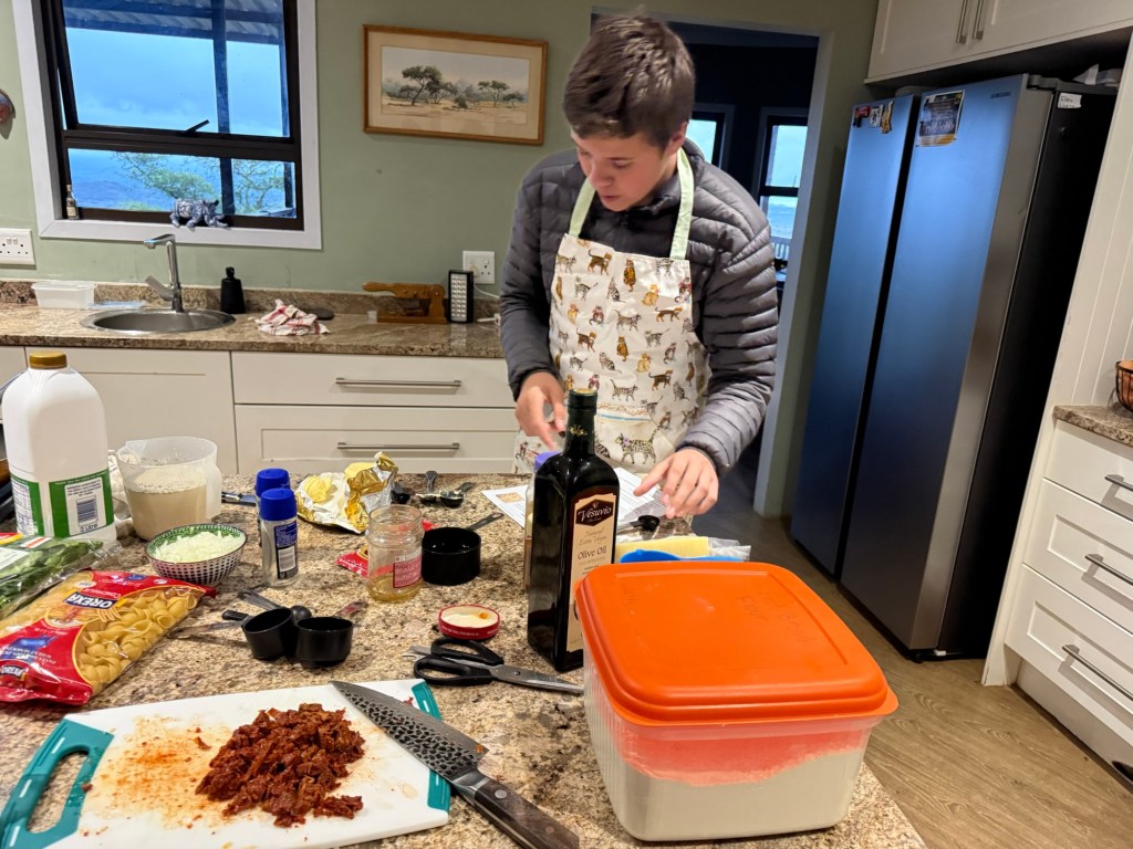 Orion tried his hand at welding (under very close supervision) and helped Ellery to weld up a new pole mount for one of our security cameras. And Cole, was a teenager and played games on his phone most of the holiday though he did make us the most delicious dinner – a Mediterranean sun dried tomato mac and cheese! We also finally started to get our veggie garden up and running planting lots of seeds. I cannot wait to be able to start harvesting again.